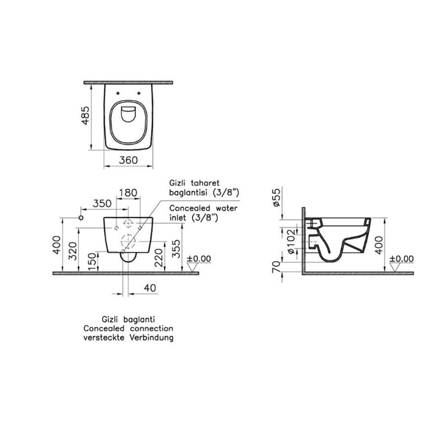Klozet yerden yüksekliği:400 mm