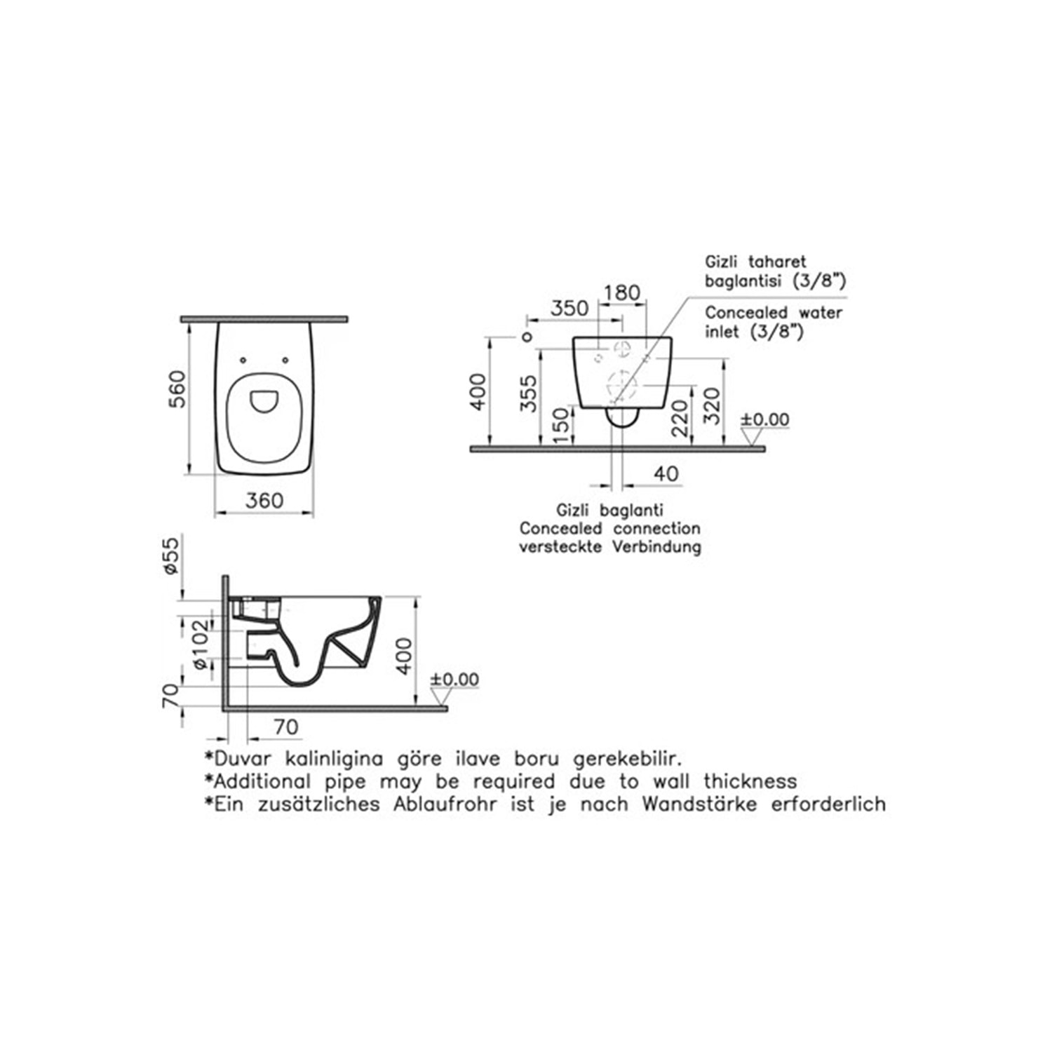 VİTRA METROPOLE SİYAH RİM-EX ASMA KLOZET, 56 CM