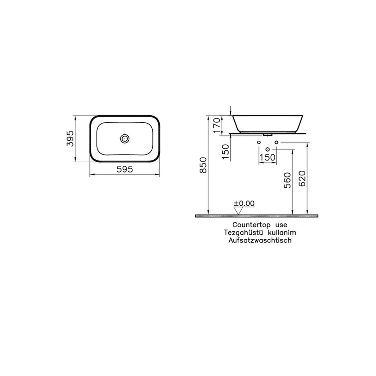VİTRA GEO ÇANAK LAVABO 60 CM BEYAZ (su taşma delikli)